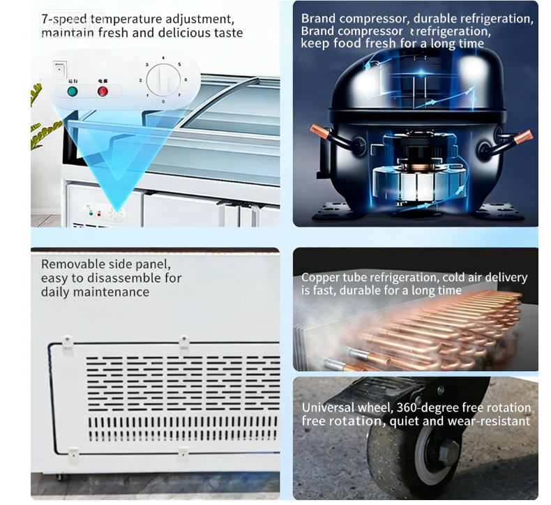 Supermarket Island Cases: Dual-temperature models with independent compressors, anti-fog glass doors, low-noise operation, and high energy efficiency—designed for fresh meat, seafood, and frozen goods in community markets and grocery stores.